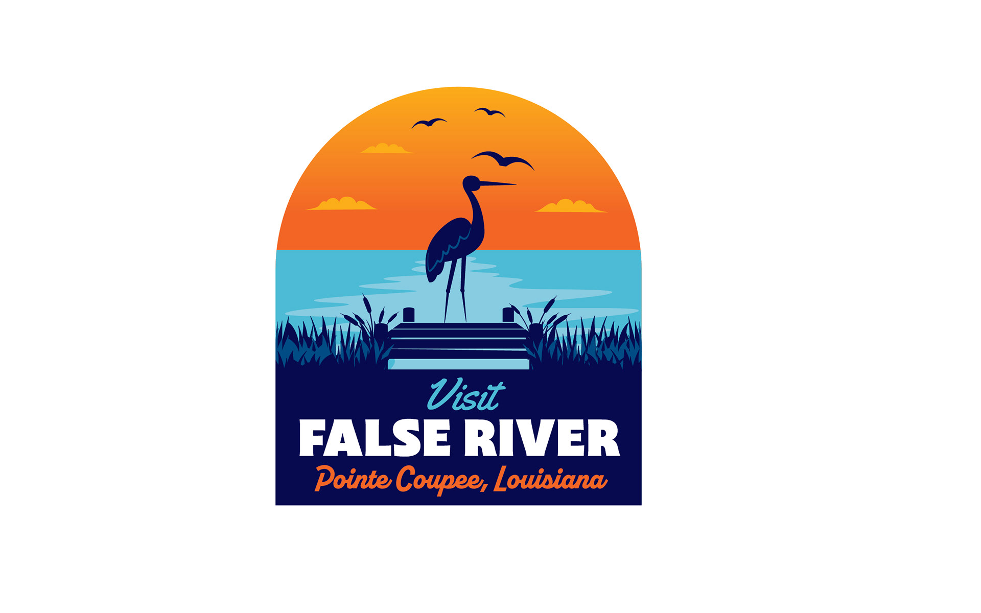 A more modern logo was created for Point Coupee Parish's rebrand to Visit False River. A website home page redesign was also created.